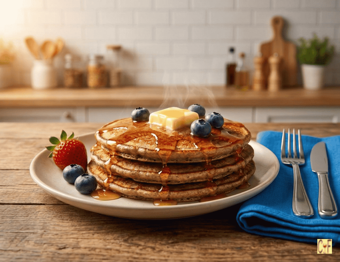 With a nutty and earthy flavor in the background, these Buckwheat Pancakes are a delicious change from the regular ones! Served with a dollop of butter 🧈, good quality maple syrup, and berries, this modified recipe will certainly change your mind about their taste!